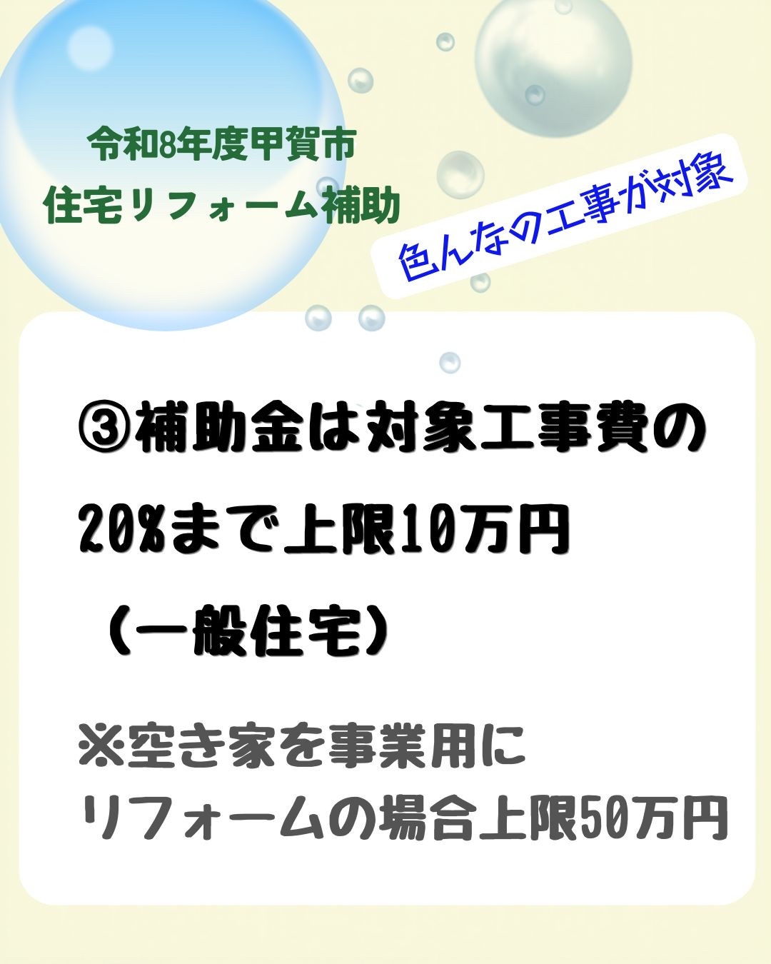 50万の工事に10万円の補助が支給される